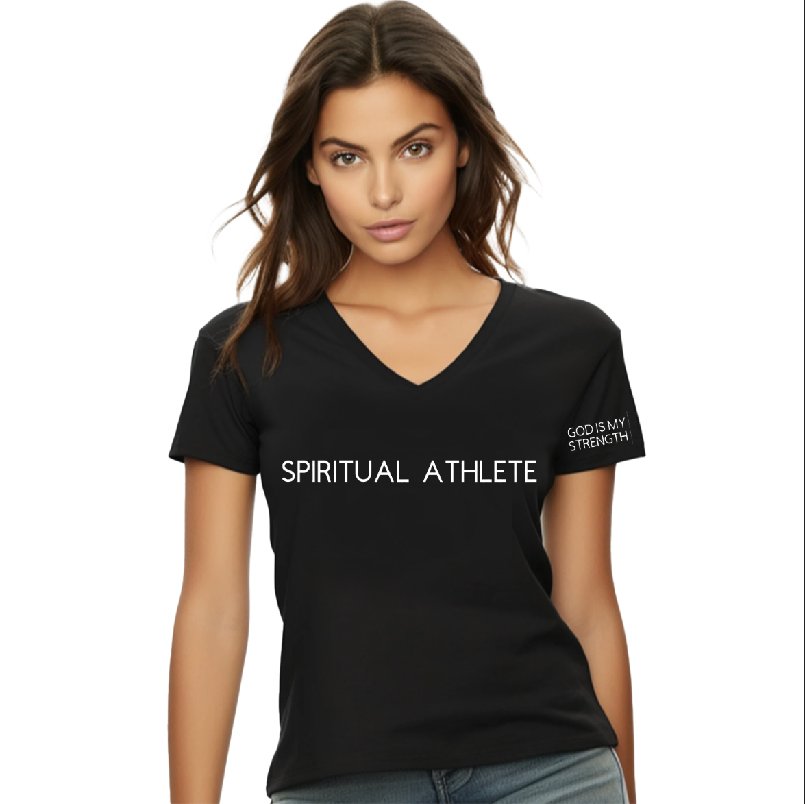 V-NECK UNISEX SPIRITUAL ATHLETE GOD IS MY STRENGTH T SHIRT
