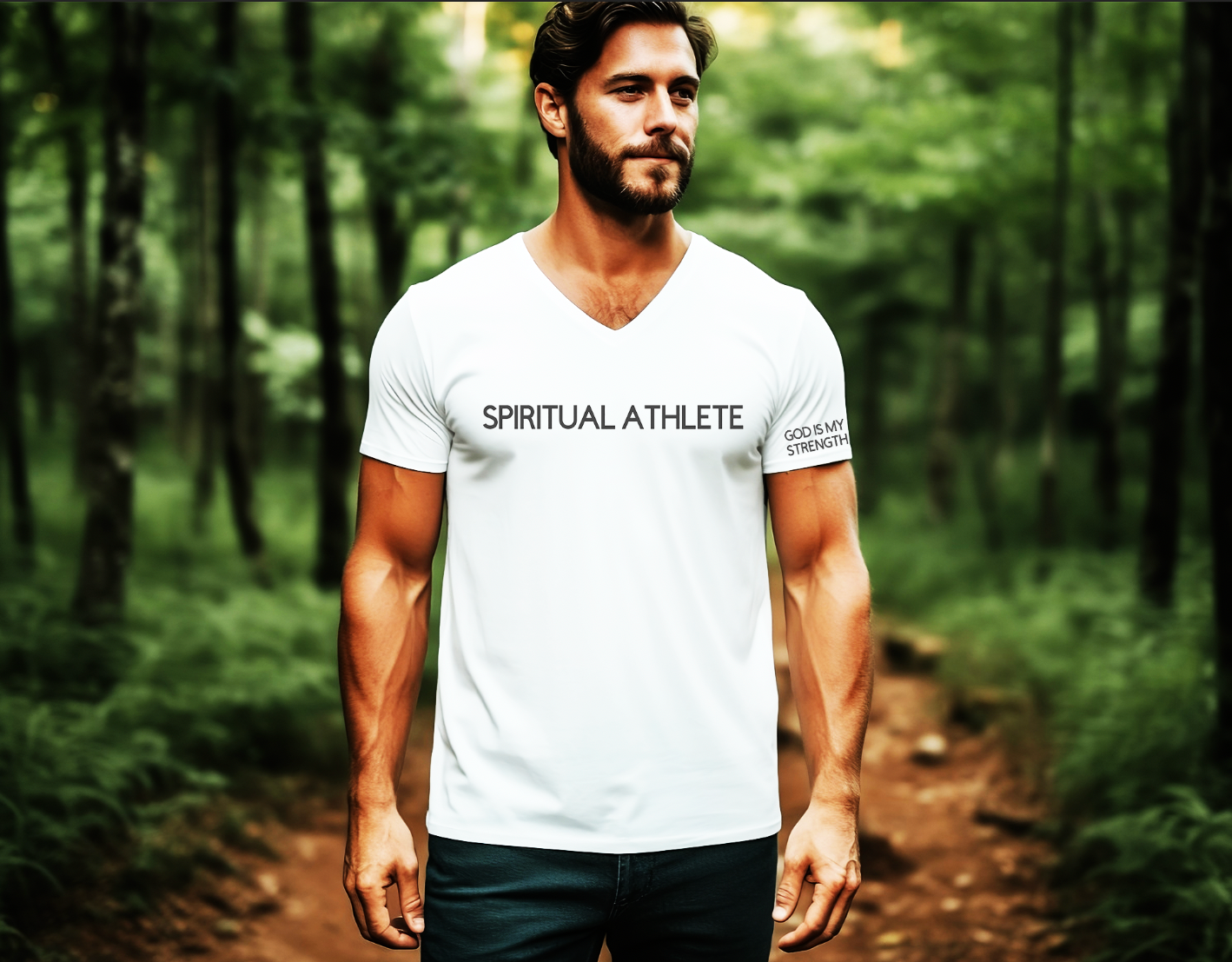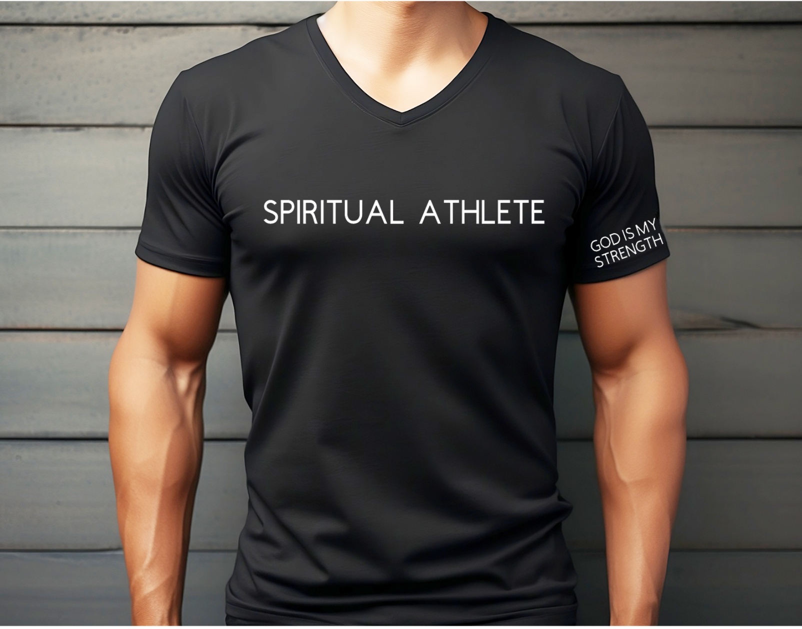 V-NECK UNISEX SPIRITUAL ATHLETE GOD IS MY STRENGTH T SHIRT
