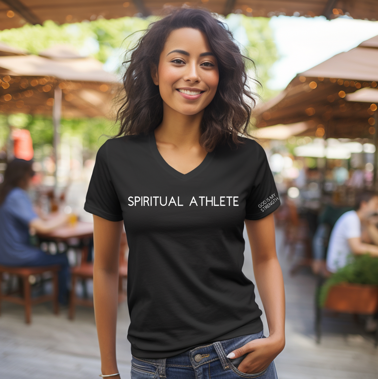 V NECK UNISEX SPIRITUAL ATHLETE GOD IS MY STRENGTH T SHIRT